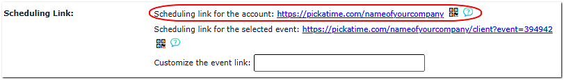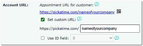 On the Global Setup / Business page, create a customized account URL for your company, such as https://pickatime.com/nameofyourcompany