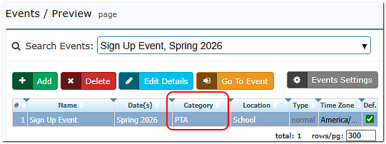 Manage Categories for Events