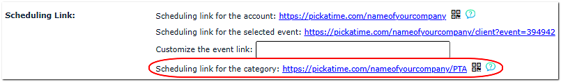 On the Events / Preview page, enter text in the Category column for each event. For example, if you wanted the event URL to be https://pickatime.com/nameofyourcompany/PTA then enter PTA in the category column.