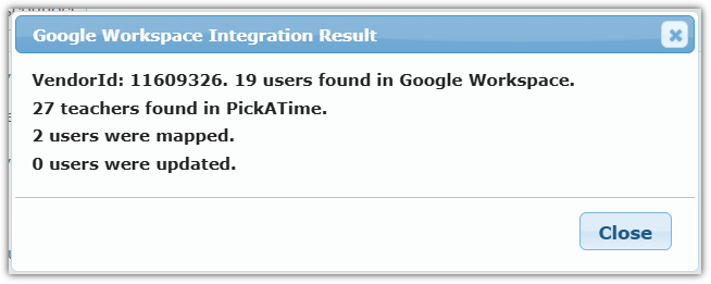 - Click Connect and Map Contacts button, and you will see the Google Workspace Integration Result.