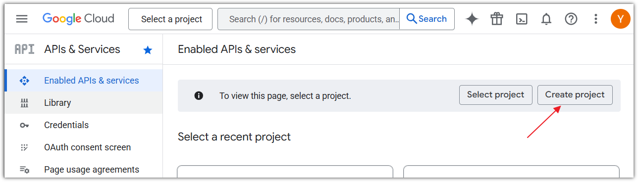 - Log in to your Org’s Gmail / Google Workspace (G Suite) Console with a Super administrator's credentials at https://console.cloud.google.com/. If you haven’t used the Console before, you will first need to agree to the Console’s Terms of Service.