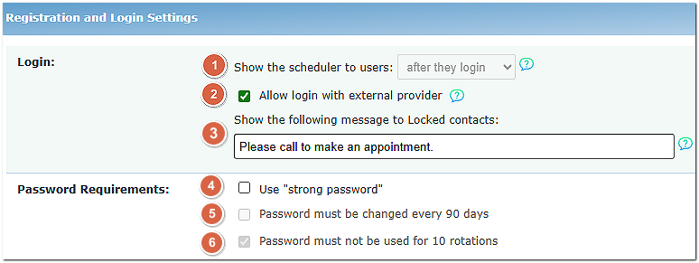 Registration and Login Settings (Located in Global Setup/Business/Registration and Login Settings)